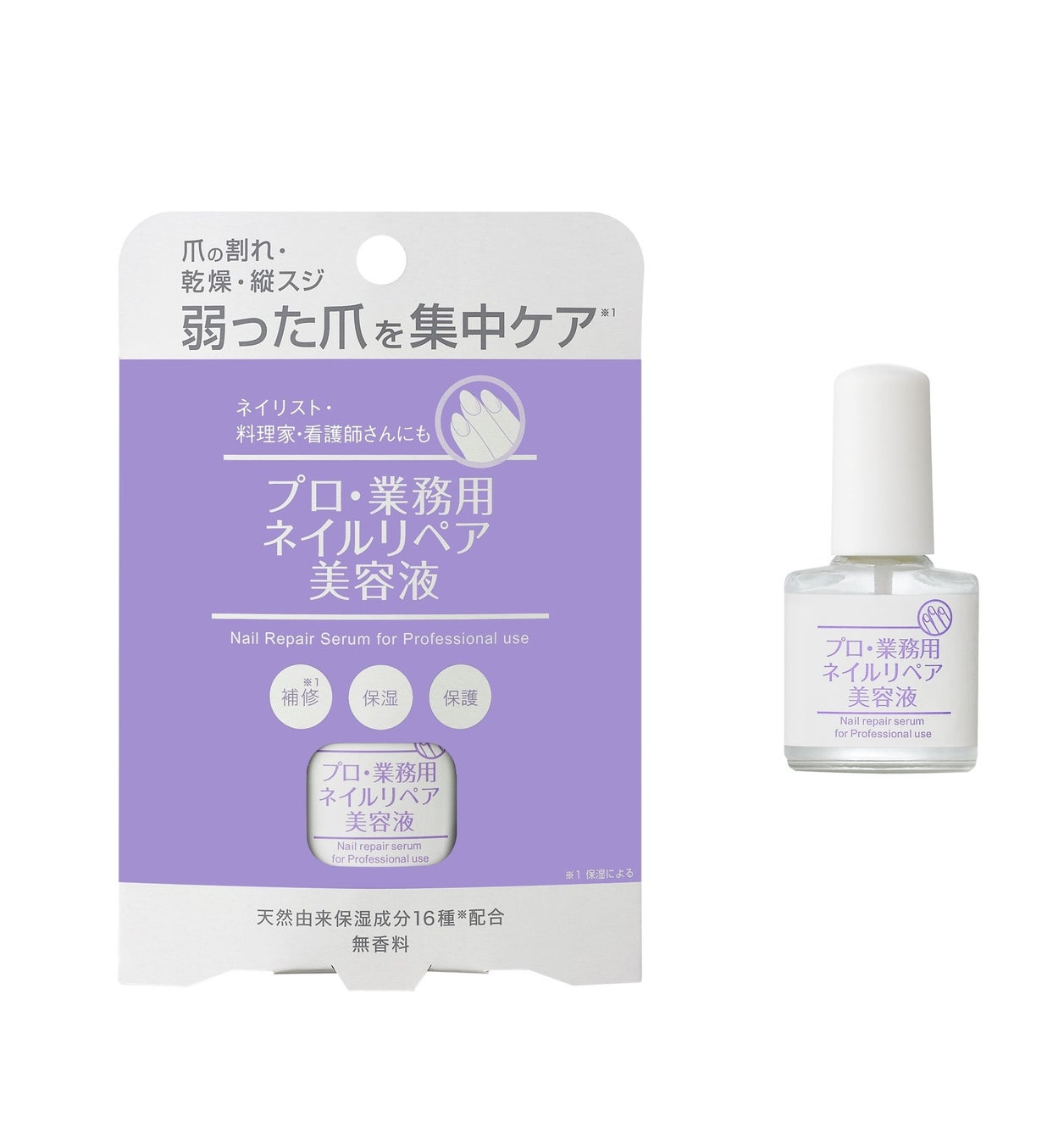 「プロ・業務用」は様々な種類のハンドクリームを展開し、様々な現場で活躍するプロや、毎日の水仕事で手肌への負担が気になる方など、多くのお客さまの美しい手肌をサポートしてきました。「手に年齢が出る」と言われますが、手をきれいに見せるには、手肌だけではなく爪のケアも欠かせません。毎日の水仕事や乾燥により、爪割れや縦スジ、ネイルによる爪への負担を感じるというお声にお応えし、爪のリペア成分*2や11種のアミノ酸*3をはじめとした美容成分を配合することで、乾燥による爪トラブルを補修して美しく健やかな爪へサポート。水溶性のためべたつきやテカリが気にならず、塗ってすぐに手作業をすることができるネイルリペア美容液です。