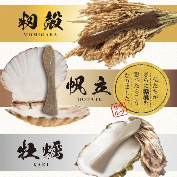 素材には「籾殻」や「貝殻」など非可食材を使用したアップサイクル素材を使用。環境配慮への一役を担います。