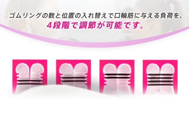 • 口に挟んですぼめるだけの簡単トレーニング!筋力に合わせて4段階で負荷の調節が可能。