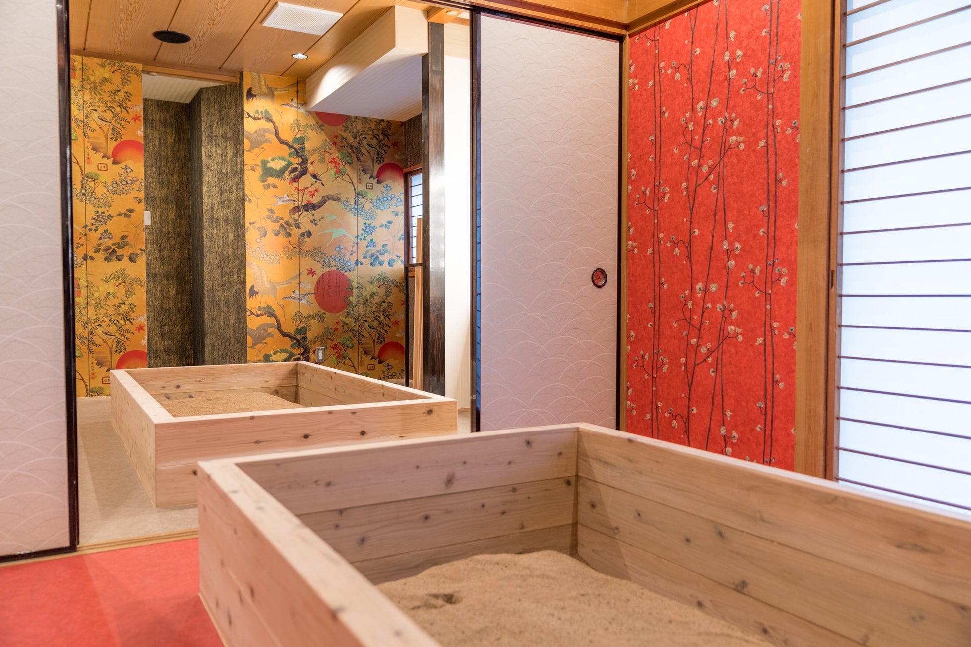 ゴールドルームとレッドルームを連結した「コネクトルーム」では、ペア入浴が可能です。ご友人同士やカップルで、楽しく汗をかくことができます(※)。
