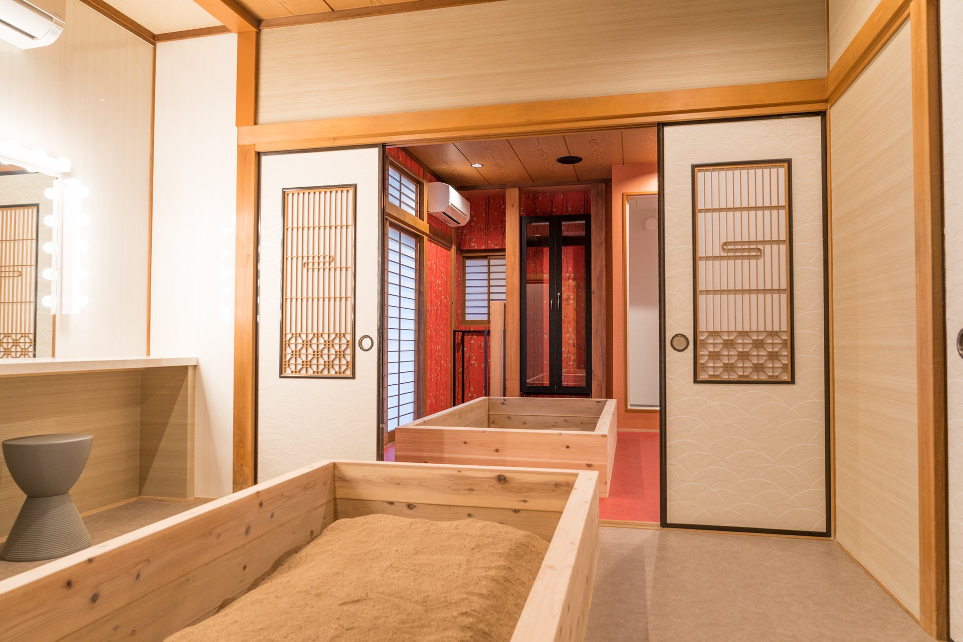 シャワールーム、トイレ、パウダールームを完備したワンフロア1浴室の贅沢な空間で、誰とも会わずに酵素浴を楽しむことができます。