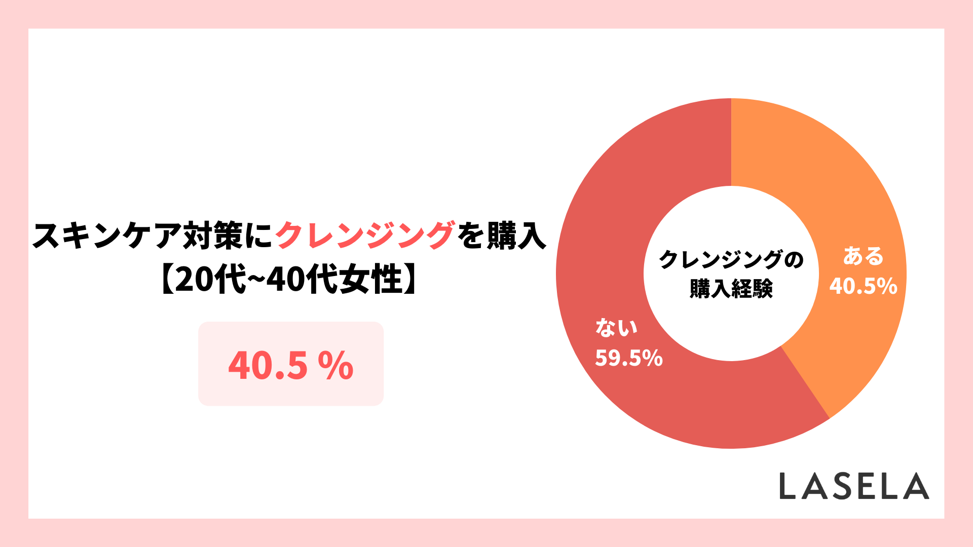 20代〜40代の女性1,214人に、スキンケア対策のために購入した美容商品をたずねたところ、全体の40.5%が「クレンジング」を購入した経験があるようです。