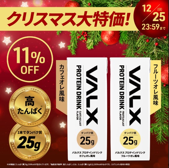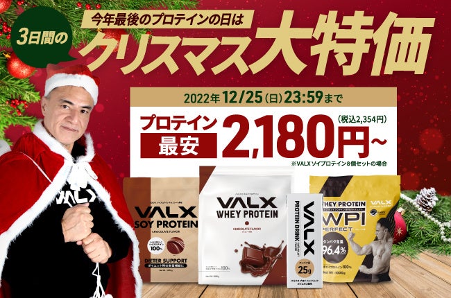 今回は、毎月25日のプロテインをお得に購入できる「プロテインの日」が今年最後ということに加え、年に一度のクリスマスということもあり、「クリスマス大特価」を開催させていただきます。