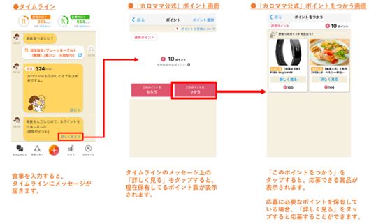 キャンペーン開催期間中に、AI健康アプリ「カロママ プラス」に食事を入力するとポイントが付与されます。貯めたポイントで、賞品に応募することができます。