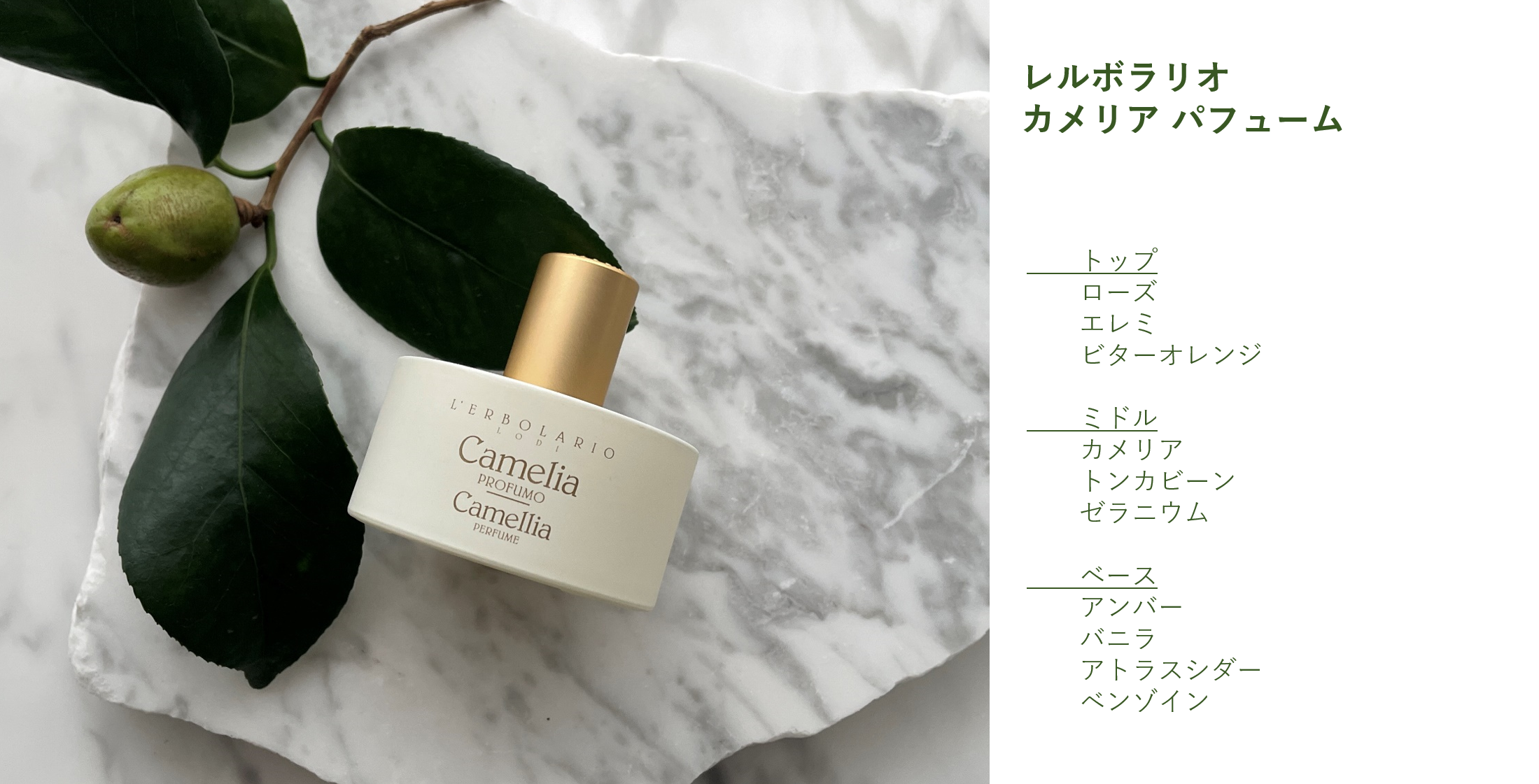 レルボラリオの研究所は、カメリア特有の上質な香り、そして優れたスキンケア効果に着目し、絹のような美しいお肌に導くボディケア製品と洗練されたフローラルパウダリーノートのフレグランス製品を完成させました。
