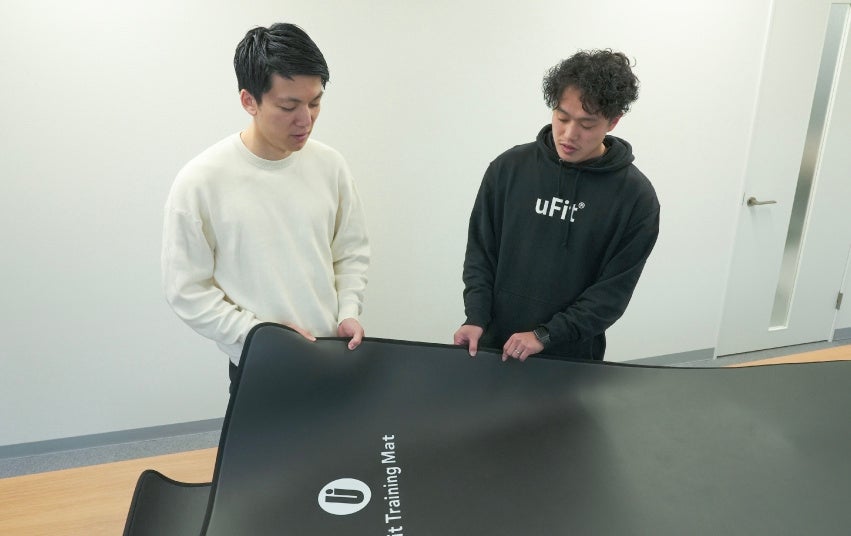 自宅でトレーニングしていると、一般的なマットでは体がはみ出てしまい、肘や膝が痛んだり、頻繁に体の向きを変える必要があったり、ストレスが溜まっていました。また、同じような悩みを抱えているお客様もいるのではないかと思い、uFit Trainingmat の開発に至りました。(uFit代表 林・開発チーム 菅原)