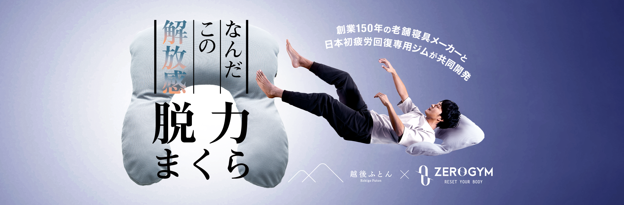 越後ふとんとZERO GYMが共同開発した超人気商品「脱力まくら」をプレゼント。