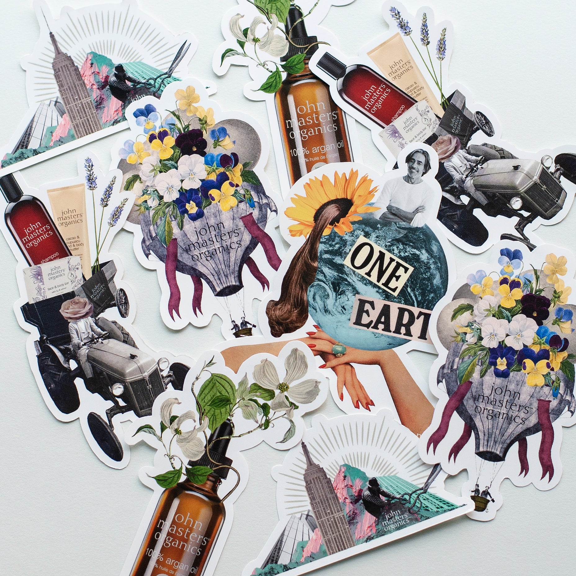 「地球に敬意を。」をテーマに掲げるjohn masters organicsのブランドコンセプトページにおいて、私たちが大切にしているMVV(ミッション・ビジョン・バリュー)を、独創的なコラージュ作品で表現してくれたのはアートディレクター、デザイナー、コラージュアーティストとして幅広く活動するQ-TA。