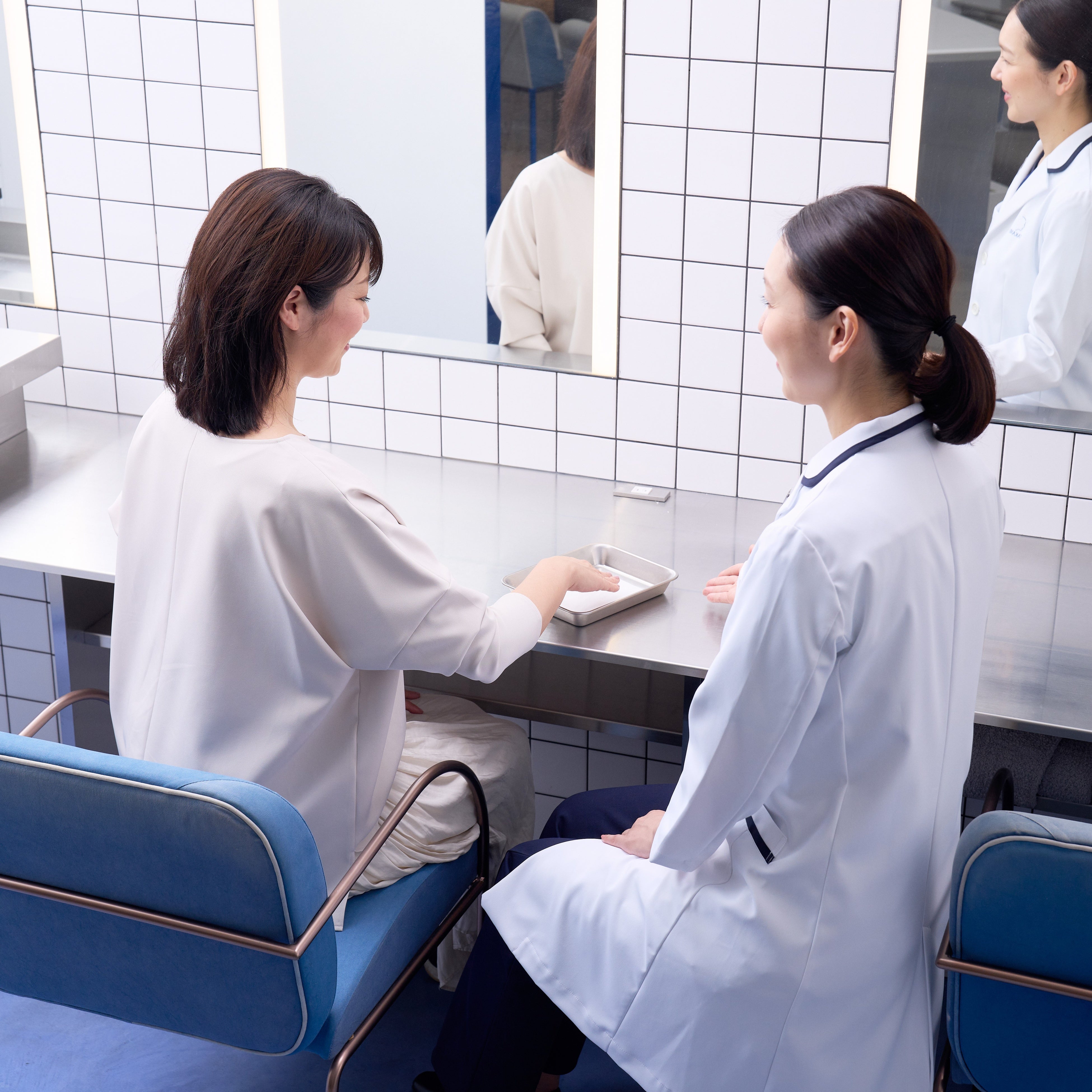 プライベートレッスンが受けられる専用オリジナルスペース“LABO SPACE”では、タカミ専属アドバイザーの細やかなコーチングで、いつも触れている自身の肌を客観的に感じ、肌感覚を研ぎ澄ましていただきます。肌のやわらかさ、温度、質感、手のひらの圧など、皮膚の繊細さを体感できるオリジナルアクティビティは、肌の扱い方を変えるだけで自身の肌がさらに美しくなれる可能性を感じ、これからのスキンケアをもっと楽しみにしていただけるきっかけとなっています。