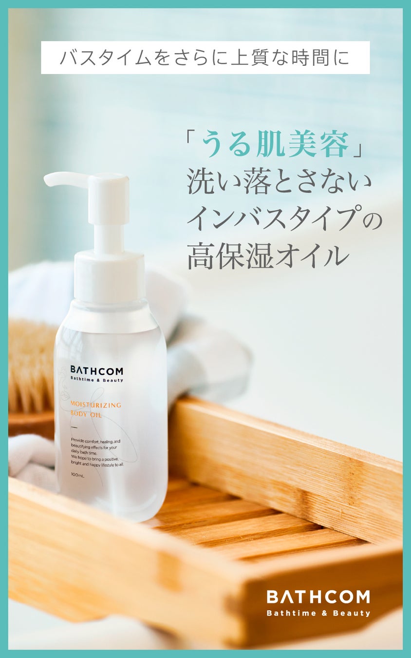 BATHCOMは、Bathtime(バスタイム)+Comfortable(快適)を組み合わせ、より快適なバスタイムを過ごしていただきたいとの想いから誕生した、新しいお風呂美容を提案するブランドです。