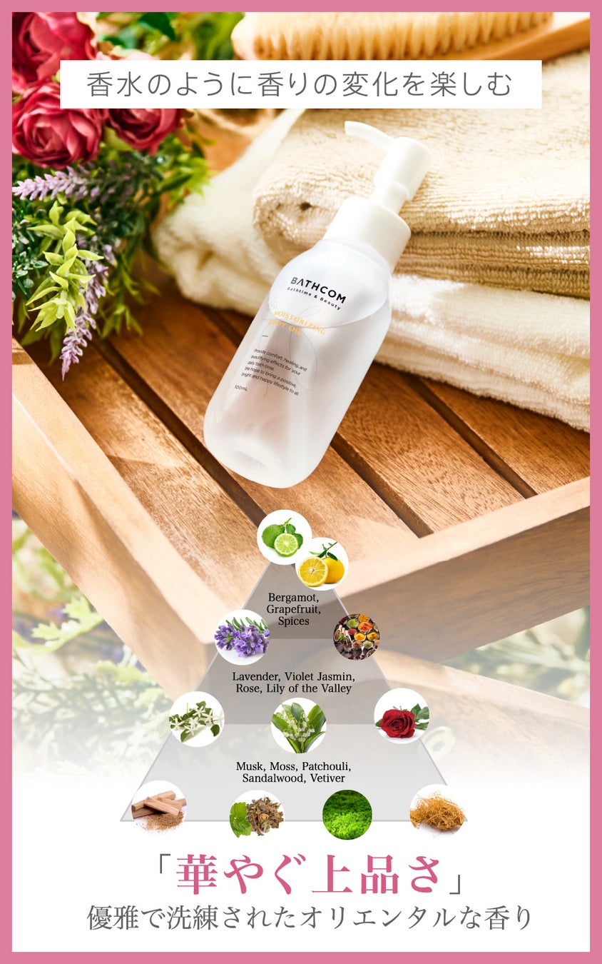 【洗い落とさないインバスタイプ】高保湿美容オイルで肌馴染みがよく、サラッとした使用感。こだわりのフレグランスで心も体もリフレッシュ&リラックス毎日の保湿ケアでお肌を健やかに保ちます。
