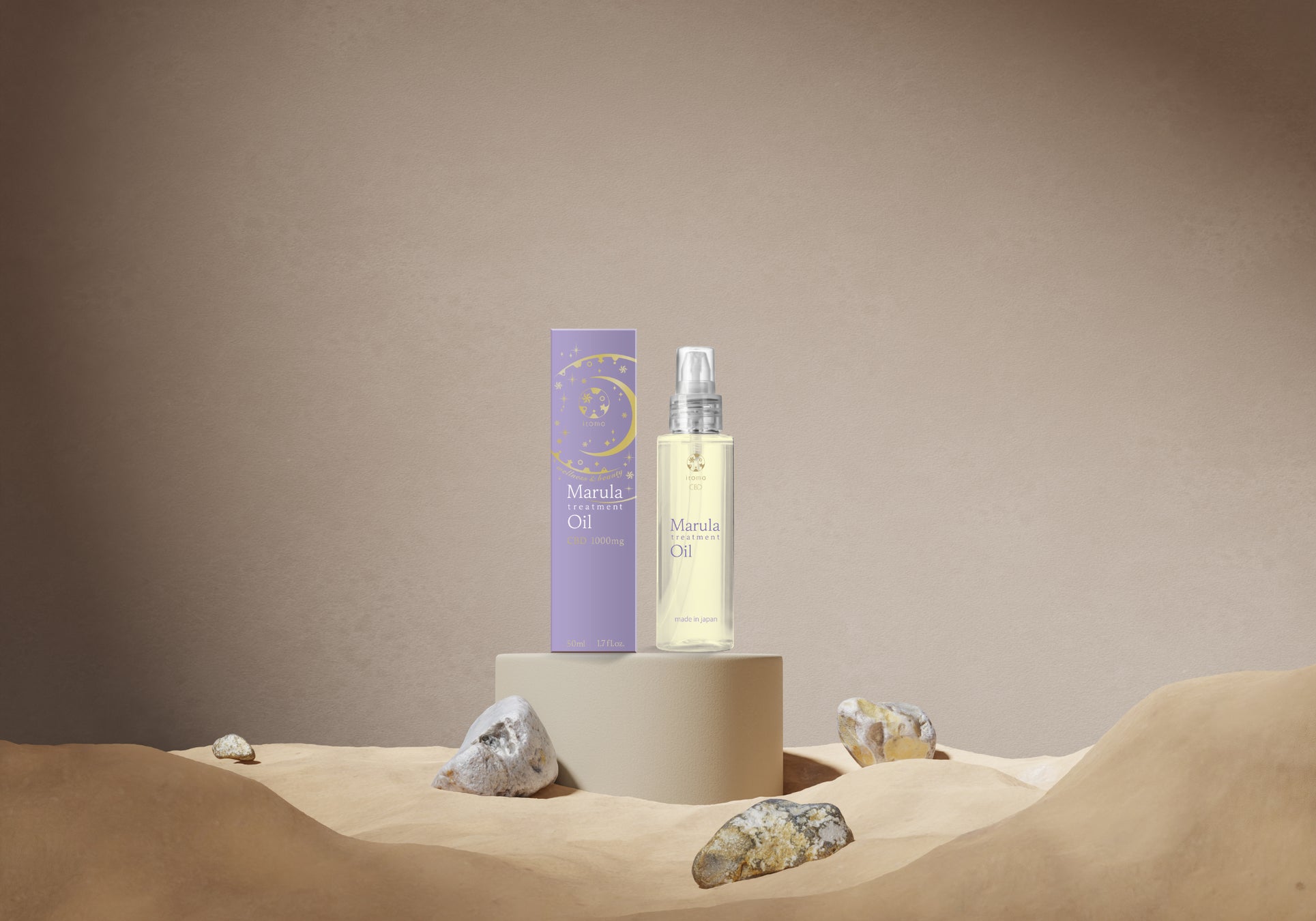 オーガニック世界統一基準であるCOSMOS認証された「マルラオイル」、注目のエイジングケア*「バクチオール」、「CBD1000mg」を配合したトリートメントオイル。*年齢に応じたケア