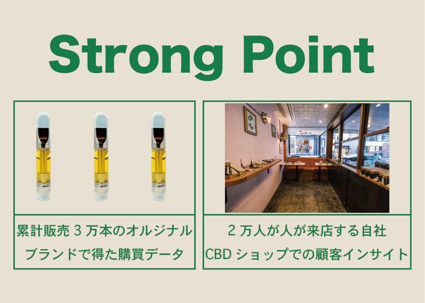弊社は2019年にCBDをメイン事業とする、日本のCBDリーディングカンパニーです。現在では、日本有数の自社ブランドのフラッグショップを持つ会社まで成長。