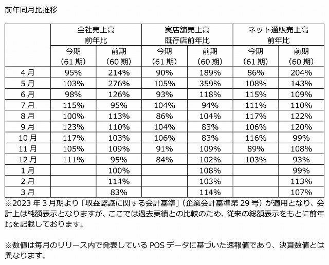 また、ネット通販においては、各サイトでの年末セールなどと連動した企画の効果により、売上高が前年比103%という結果になりました。