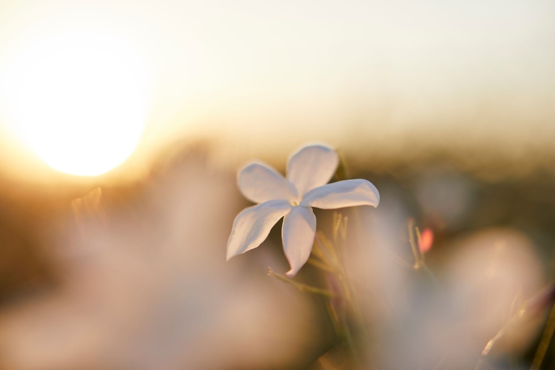 フレグランスにおいて最もアイコニックな花のひとつであり、ゲランが愛してやまない6つの香りの素材「ゲルリナーデ」のひとつでもある、ジャスミン。〈ジャスミン ボヌール〉は、複数のジャスミンを用い、この小さな白い花を讃えます。