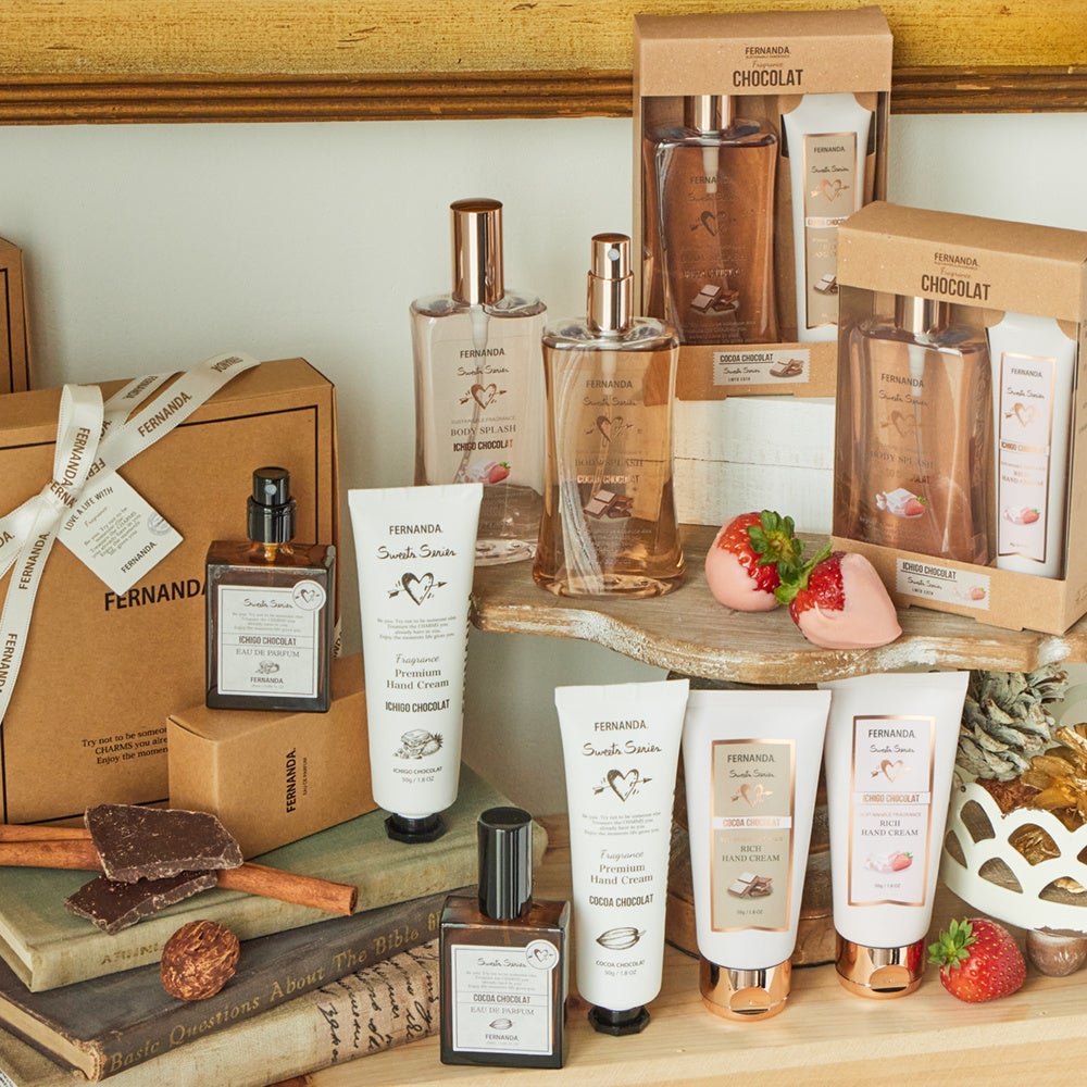 2023年1月初旬より、株式会社FERNANDA JAPAN(代表取締役:流合貴之)は、天然由来成分を香料原料として使用した「ショコラコレクション」を直営店とオフィシャルECサイト、全国のバラエティーショップ等で限定発売致します。