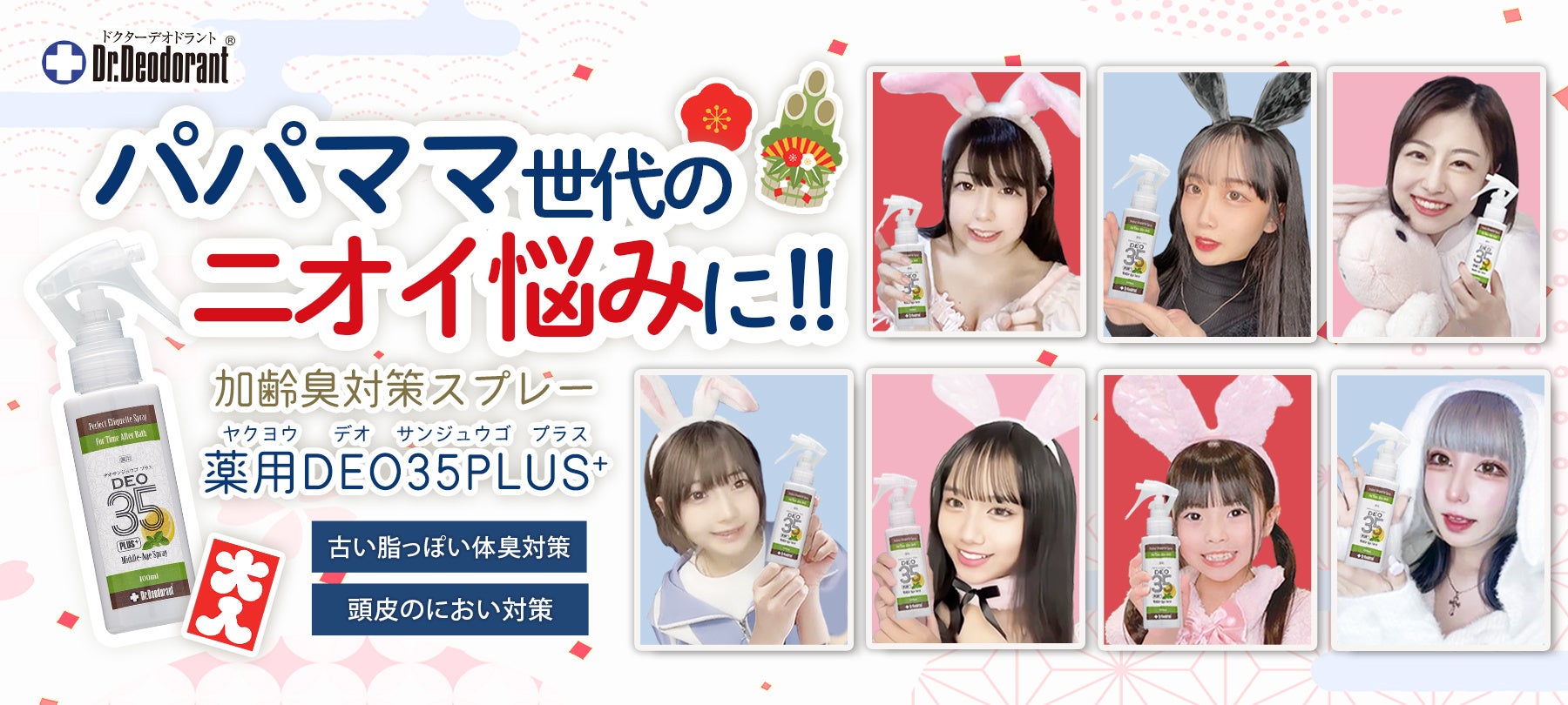 - 今年の干支「ウサギ」 に扮したアイドル、レイヤー、タレントが、デオ35プラスCMシリーズ第5弾「お正月特別編」でパパママ世代に向けて加齢臭の注意喚起!