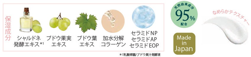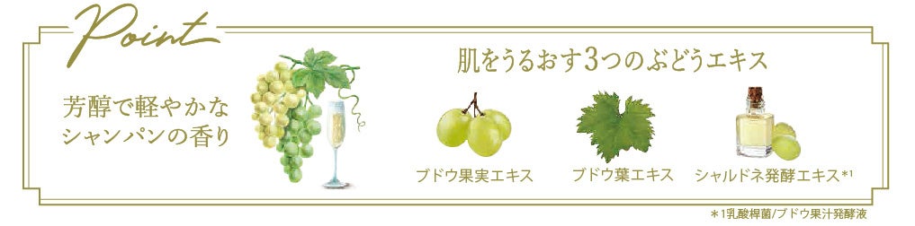●芳醇で軽やかなシャンパンの香りと肌をうるおす3つのぶどうエキス