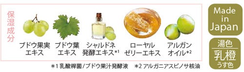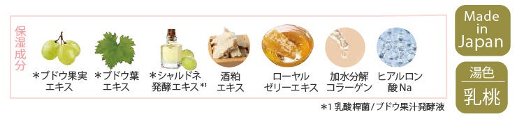 *ブドウ果実エキス、ブドウ葉エキス、シャルドネ発酵エキス(乳酸稈菌/ブドウ果汁発酵液)