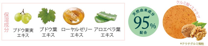 ●芳醇で軽やかなシャンパンの香りと肌をうるおす3つのぶどうエキス