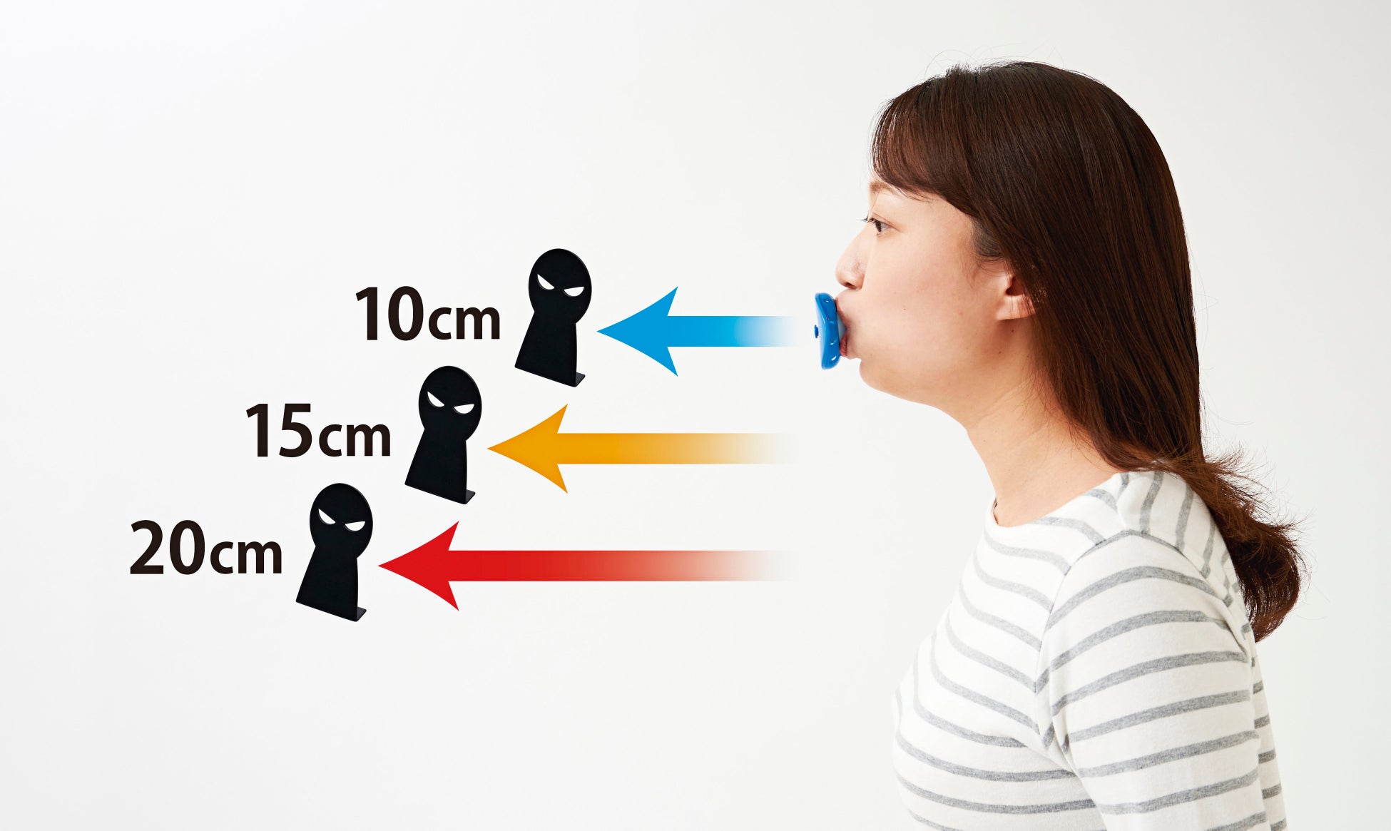 口にくわえて息を吹くとプロペラが回る構造。付属のスタンドに向かって息を吹きかけ倒すことで楽しく腹式呼吸を意識できます。