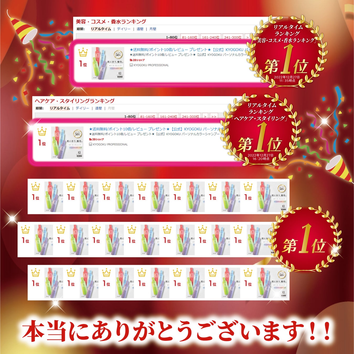 この度、株式会社kyogokuが展開する美容ブランド「KYOGOKU PROFESSIONAL」でも人気の「KYOGOKU パーソナルカラーシャンプー」が楽天の人気ランキングで23冠を達成いたしました。