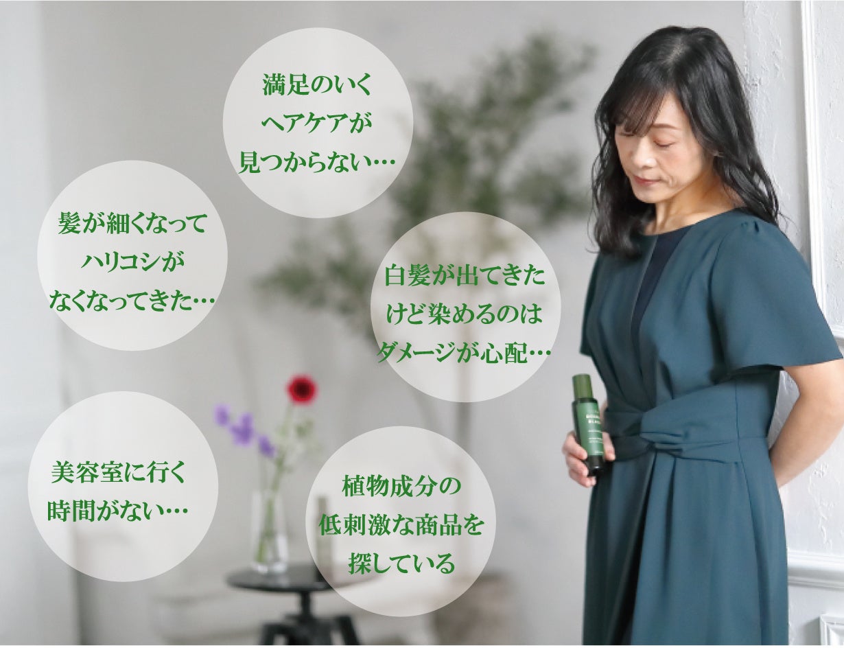 気になる白髪や髪のやせ細り、頭皮のダメージといった今求められるお悩みに、「植物のチカラと最先端技術で、安全安心に健康的なエイジングケア」を叶えるために誕生した、髪と頭皮のためのエイジングケアブランドです。