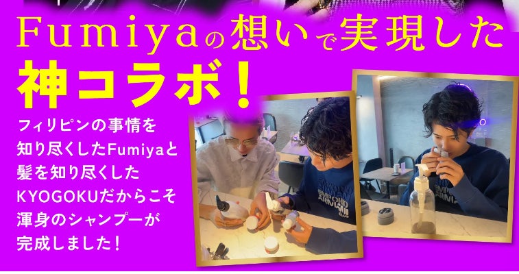 株式会社kyogoku(京極琉)とフィリピンで人気の日本人インフルエンサー「Fumiya」さんが、シャンプーとトリートメントを共同開発いたしました!