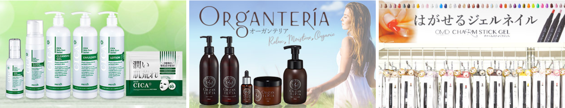 事業内容 :エステ・ネイル・まつげエクステ・理美容などの業務用サロン用品や化粧品の製造販売メーカー