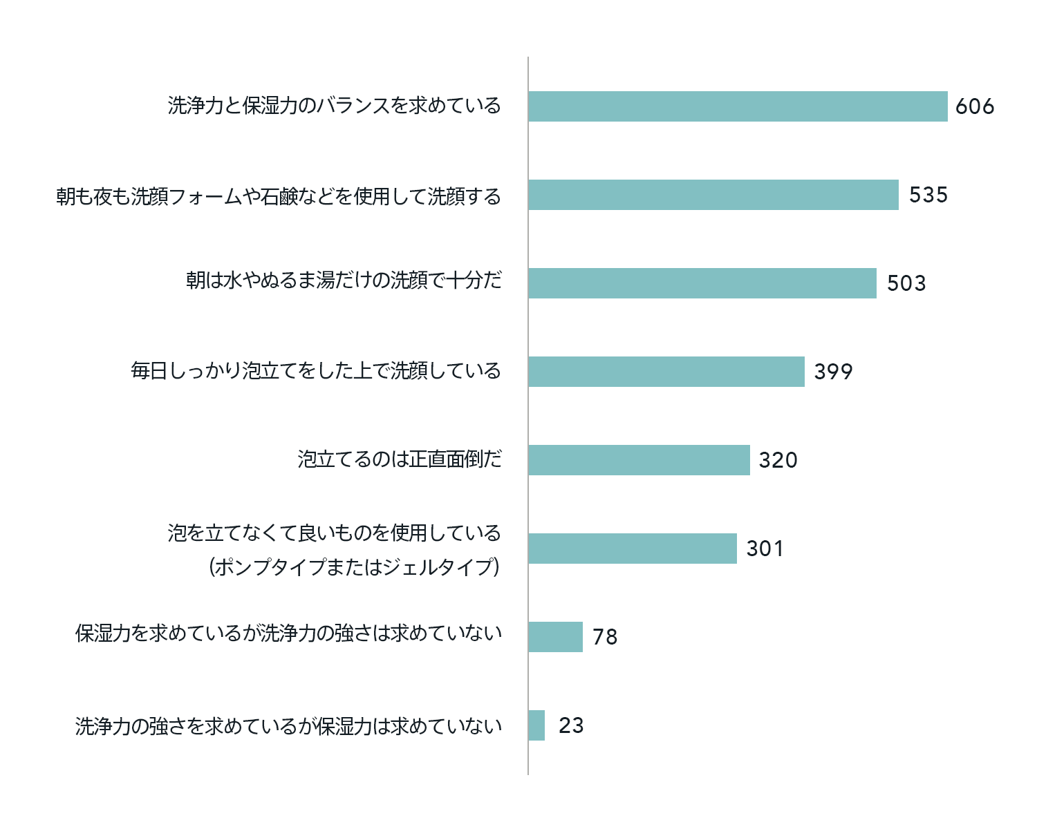 スキンケアは大きく分けると「落とす」「潤す」「補う」の3ステップがありますが、1つ目のステップである「落とす」ステップは、化粧水や美容クリームの浸透※1を左右する大事なステップです。その製品開発を進めるにあたり、日本最大級のブログサービス「Ameba」の女性ユーザーへ洗顔料へのこだわりや課題についてアンケートを実施しました※2。