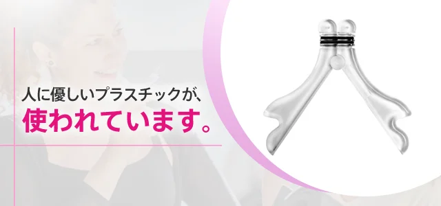 【U-Trainer】は唇の両端をフックに引っ掛けて使うため口の中での接触部分が少なく、唾液がべっとり付くようなことはありません。