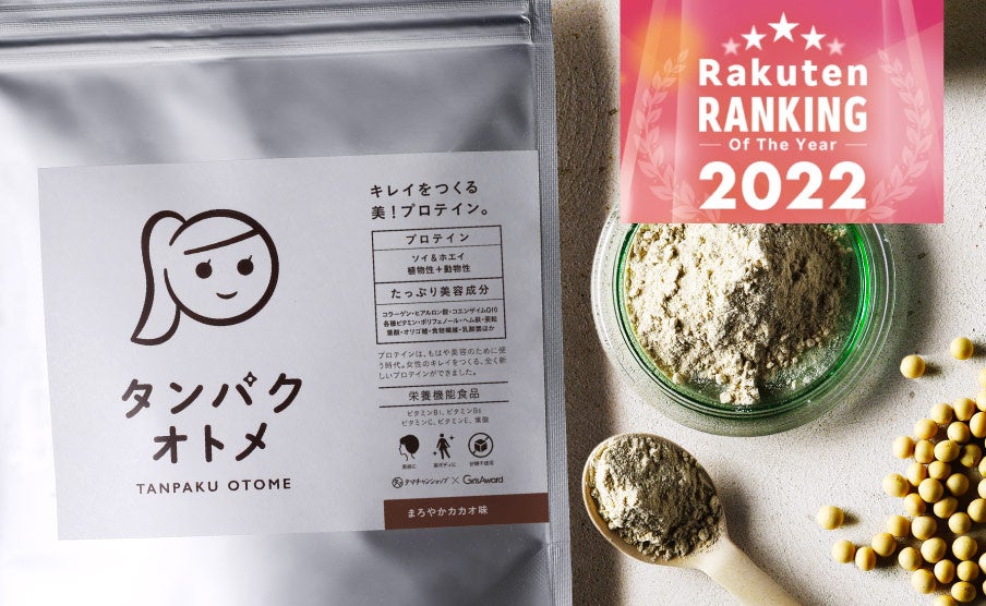 \2年連続No.1/女性のための美容専門プロテイン「タンパクオトメ」、楽天年間ランキング2022 ダイエット・健康ジャンル第1位受賞!