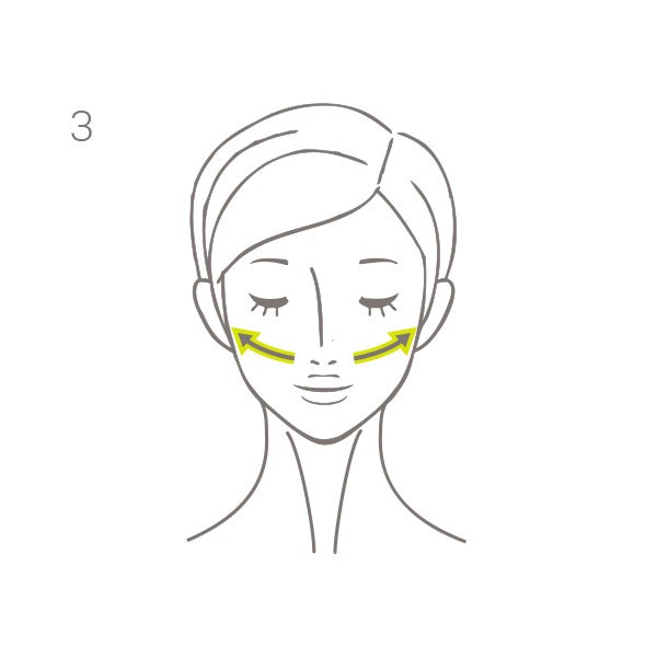 3.人差し指の腹を使って、頬骨の下を鼻から耳に向かってプッシュします。
