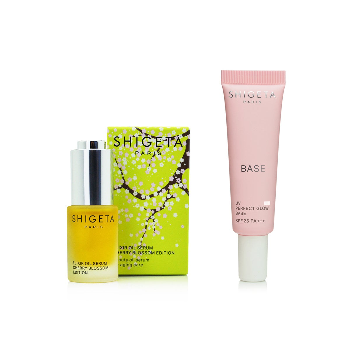 プロテクション機能、スキンケア効果の高いUVパーフェクト グロウベースに、紫外線や花粉にさらされたダメージ肌をいたわりながらも、エイジングケア※1がかなうEXオイルセラム Cブロッサムをセットにしました。UVパーフェクトグロウベースに含まれる「サクラの花エキス」が光による刺激から、「海藻由来成分」が過酷な外部刺激から素肌を守り、「バイオヒアルロン酸」がメイクによる乾燥を、「アロエベラ葉汁」が日を浴びた肌を乾燥から守り、「シトラス果実由来成分」が、毛穴レスなスムース素肌へ導きます。春の肌ダメージケアを夜のお手入れではもちろん、日中も叶えることができるスペシャルキットです。※1 年齢に応じたケアのこと