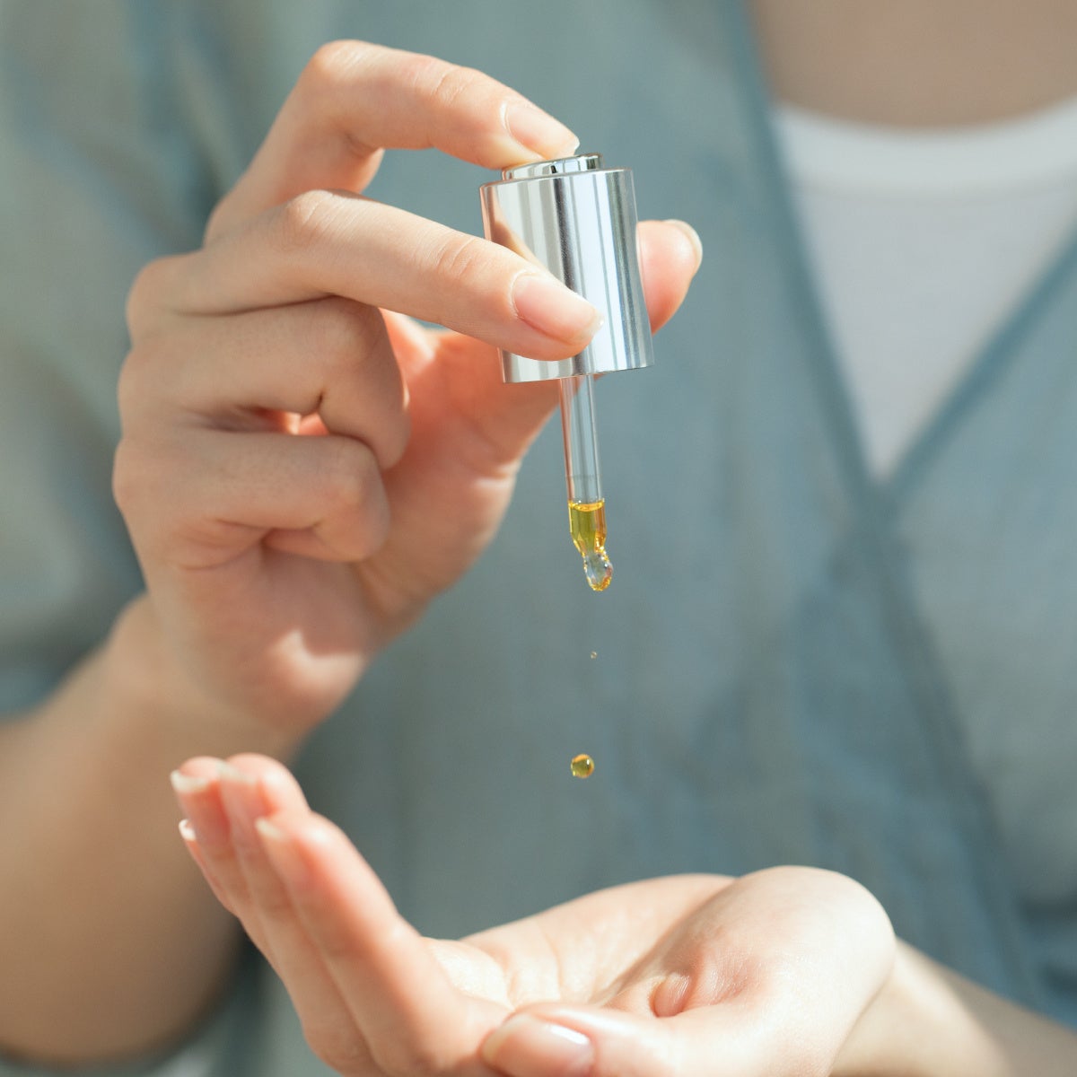 夜、洗顔後に化粧水でお肌を整えたあと、デイリーケアの場合は3~5滴を手にとり、お顔全体に塗布します。 ディープケアの場合はスポイト2プッシュ分を手にとり、お顔やデコルテに良く馴染ませます。