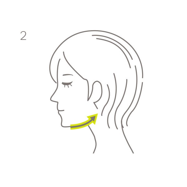 2.親指の腹を使って、あご先から耳の下に向かって流します。