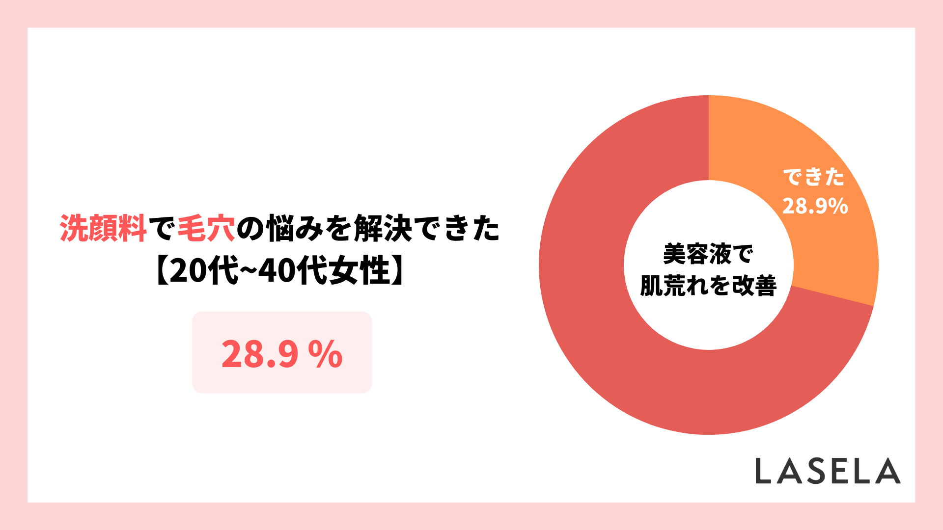 - 毛穴の悩みを「洗顔料」で解決できた人は購入者の28.9%