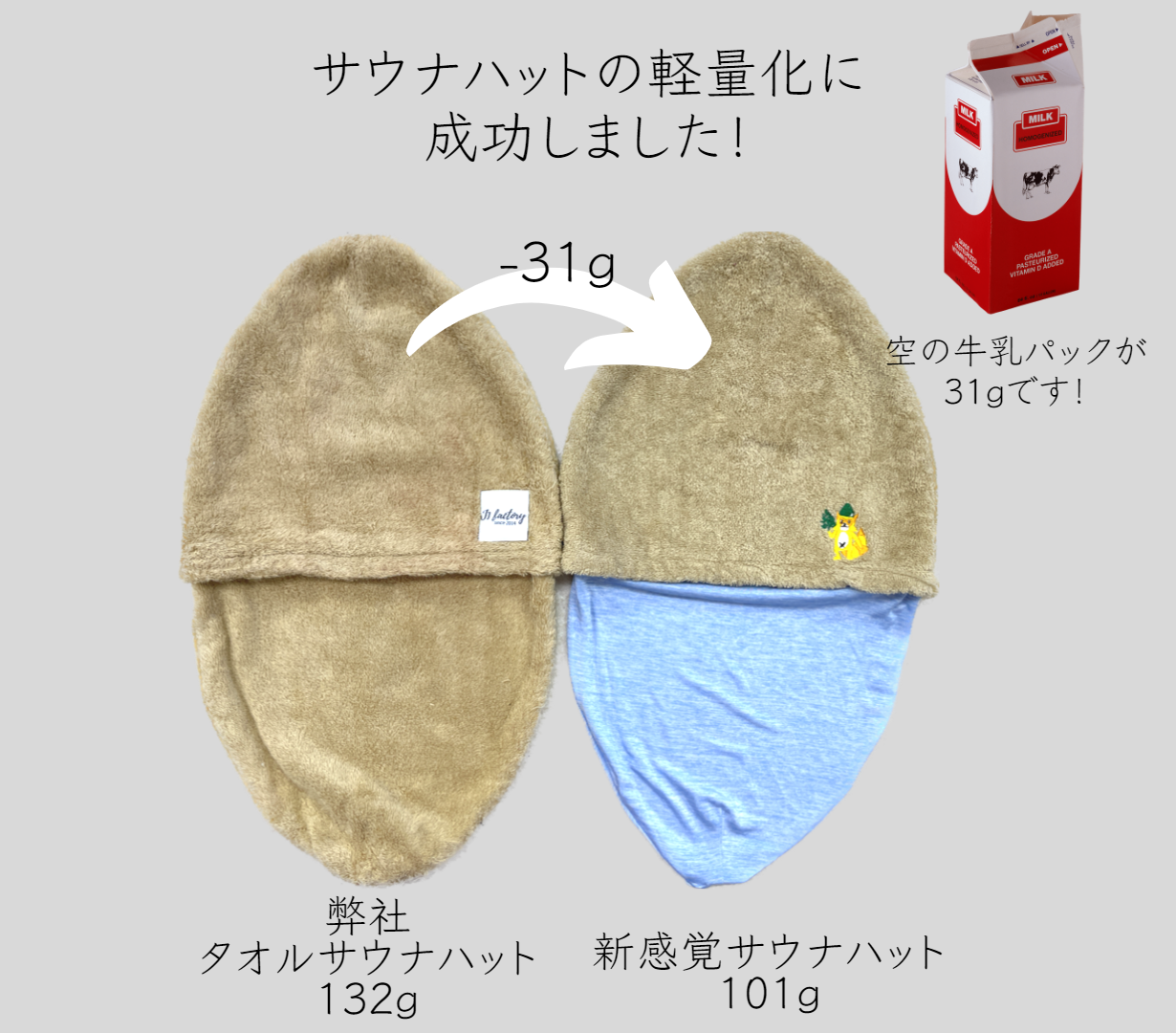 弊社の大人気商品「泉州サウナハット」は表生地も裏生地も泉州タオルを使用していてしっかりとした被り心地が人気ですが132gあり、決して重くはないのですが水分を含むと少し重く感じられました。