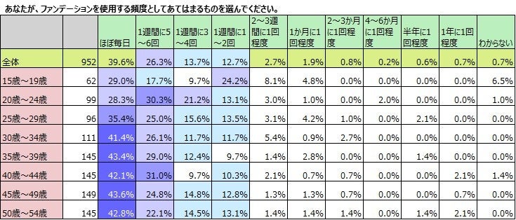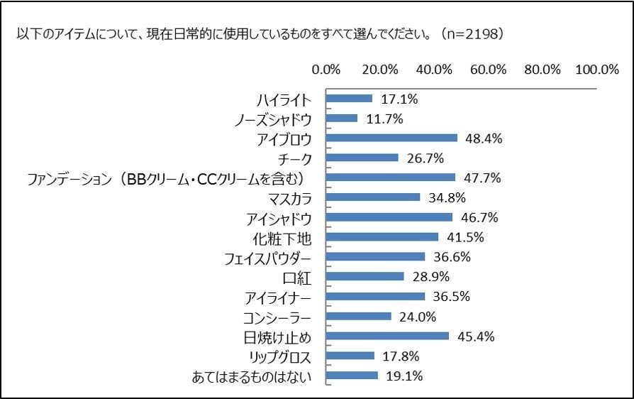 「ファンデーション」使用者激減。2019年11月調査では「使用している」88.5%、