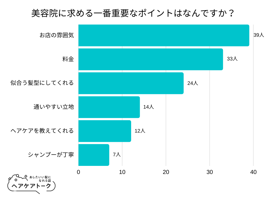 話しやすい美容師さんにお願いしたいから、居心地が悪いところはストレスだからという意見が多くありました。