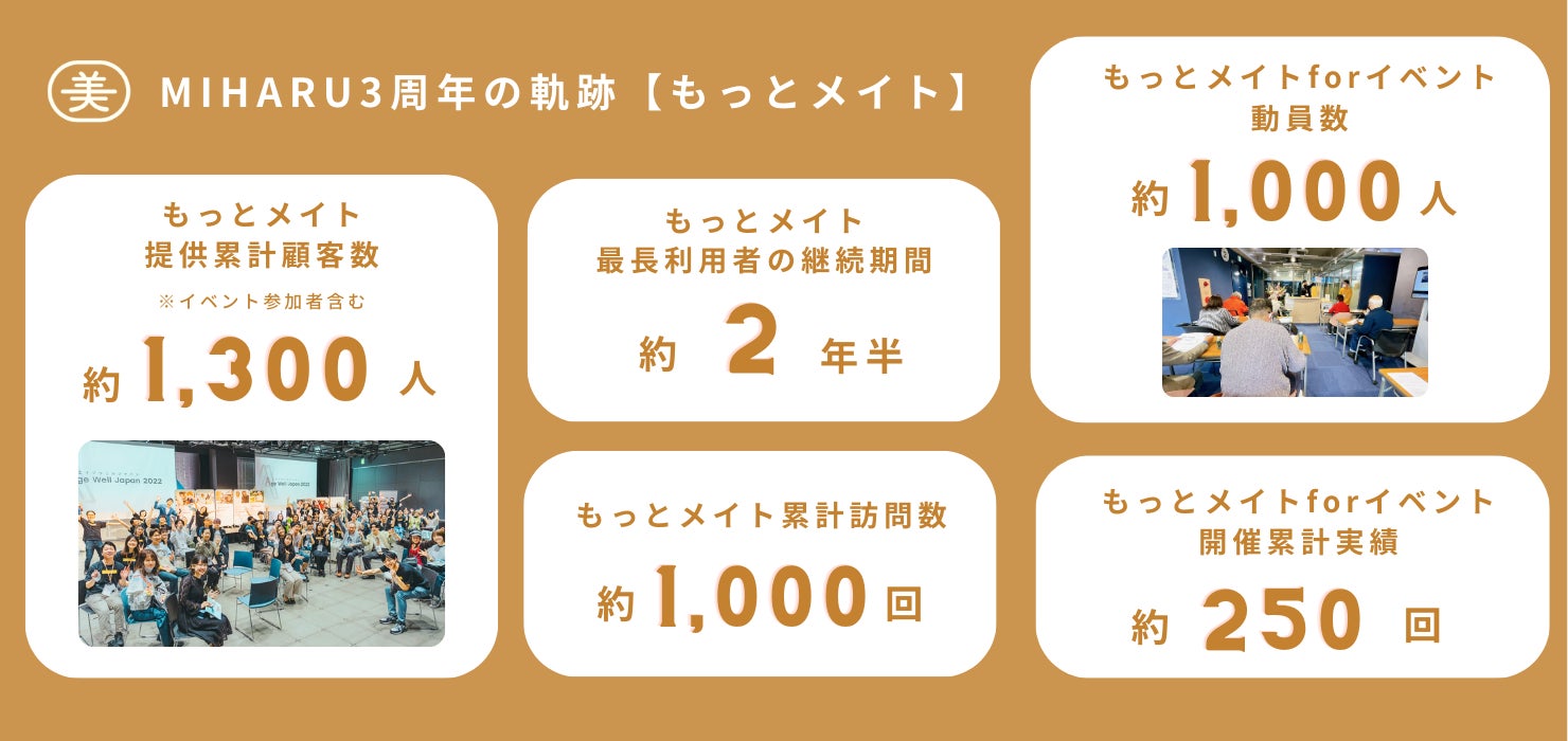 - もっとメイト提供累計顧客数:約1,300人(イベント参加者も含む)