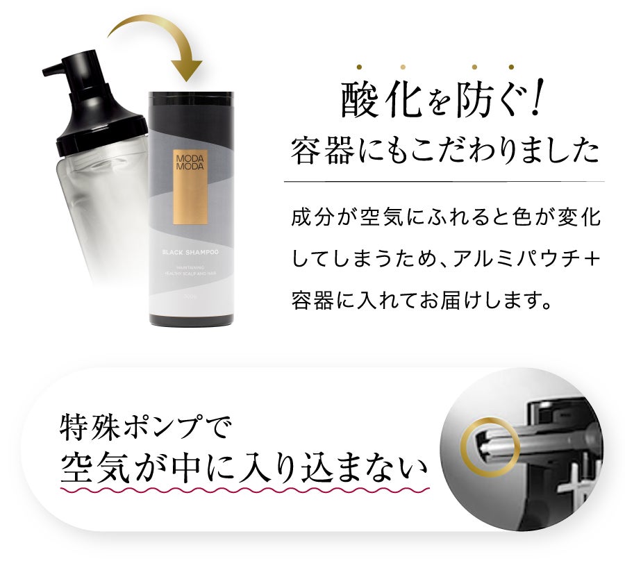 バナナが空気中に長く触れると茶色から黒色に変わる原理から着想を得て、独自成分ブラックC5を開発。染色剤ではなくシャンプーだけを使用しているにもかかわらず、白髪が黒褐色に変わります。