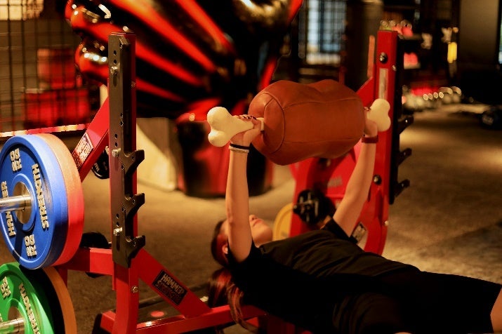 赤髪海賊団のシンボルマークを模した「シャンクスウェイトベスト」や、海賊肉をイメージした「肉バーベル」といった『ONE PIECE』をモチーフとしたトレーニング機器でモチベーションを高められます。