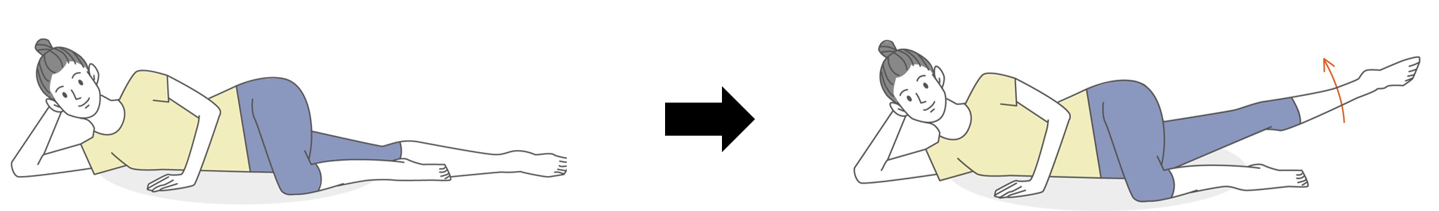 ②上の脚の股関節と膝を曲げ、脚を前に出す