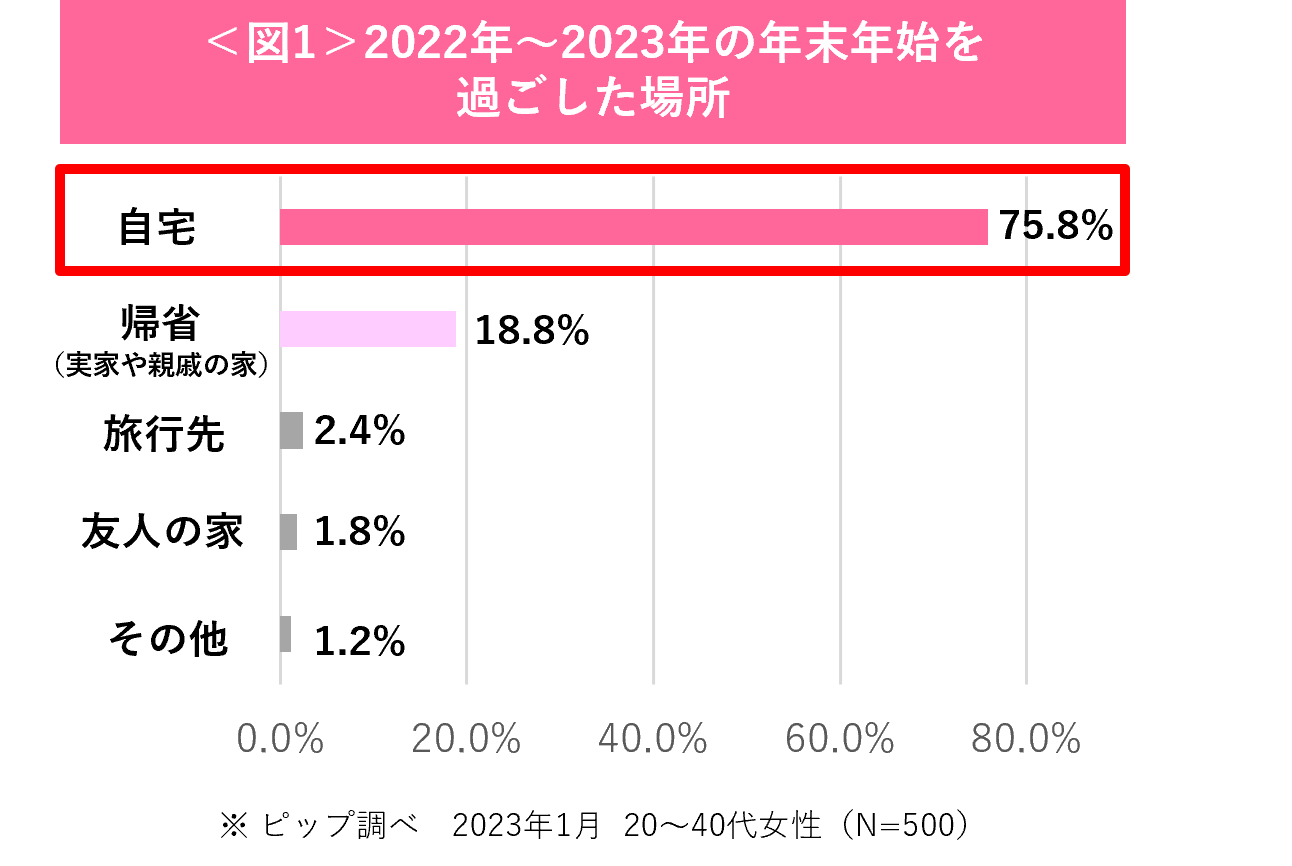 ▶2022年~2023年の年末年始は自宅で過ごしたという人が75.8%。