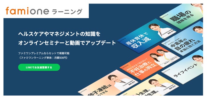 「子どもを願うすべての人によりそい 幸せな人生を歩める社会をつくる」をビジョンに掲げ、LINEを活用した妊活コンシェルジュサービス「famione(ファミワン)」 https://lp.famione.com/ を提供する株式会社ファミワン(本社:東京都渋谷区、代表取締役:石川 勇介、以下当社)は、動画見放題コンテンツ「妊活ライブ」をリニューアルし、「ファミワンラーニング」 https://famione.com/learning/ としての提供を開始しました。また、2月10日には「ファミワンラーニング」上でオンラインセミナー「更年期に起きる身体と心の変化~上手に付き合うコツ~」を開催します。