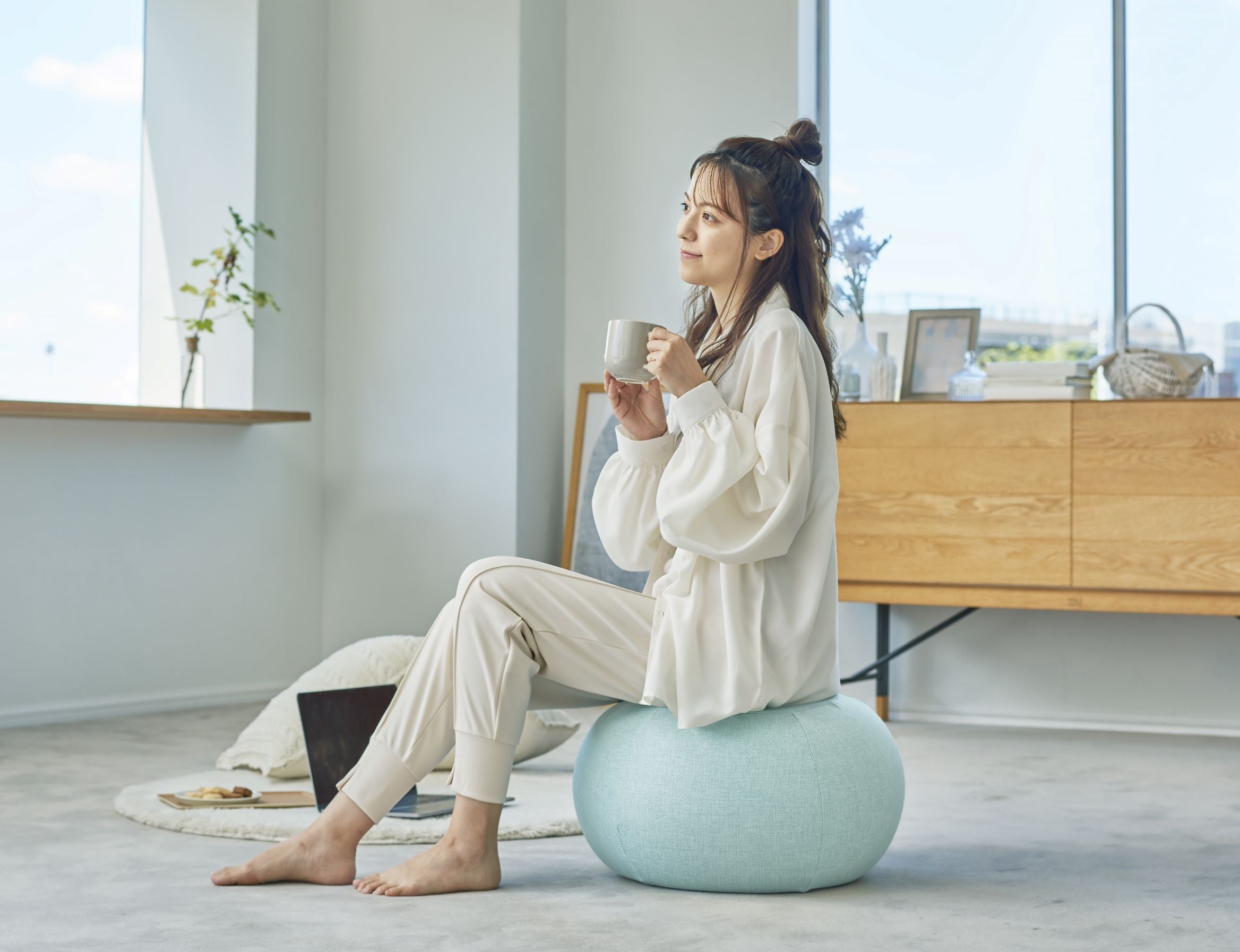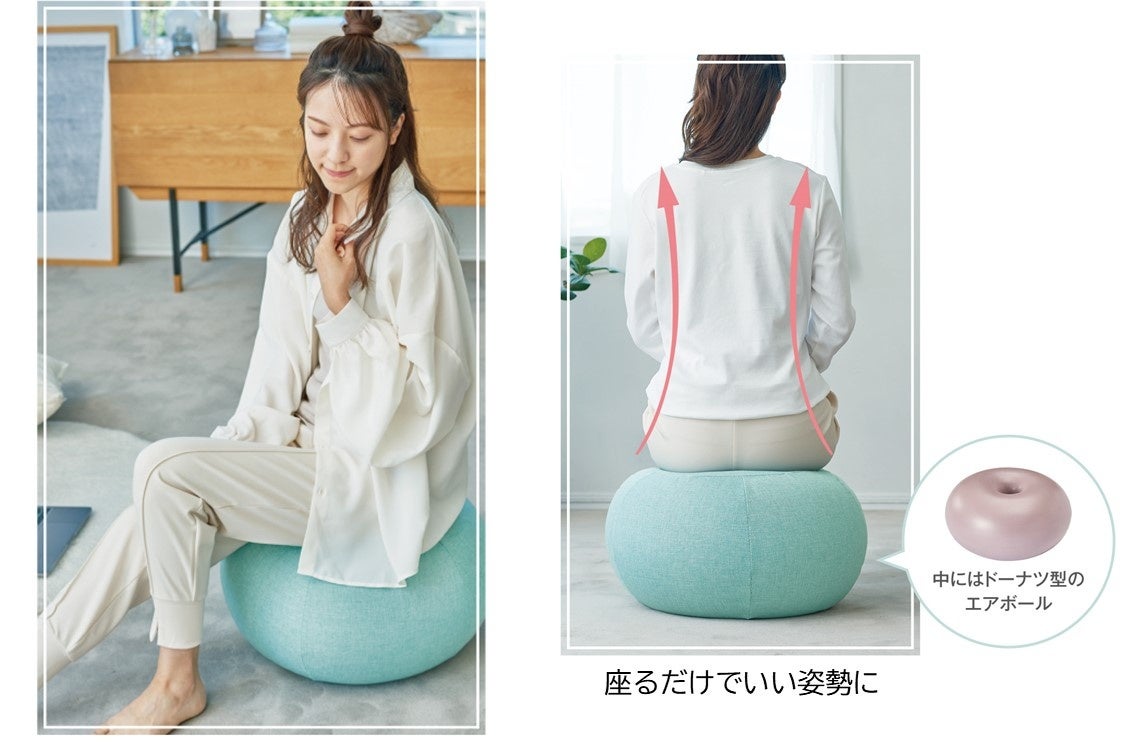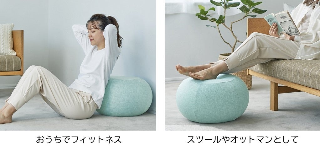 この度シリーズ第2弾として発売するのは、空気を入れて膨らませるおうちフィットネスクッション「Toffy バランスクッション」。座るだけで体幹を意識することができ、ライフスタイルの中にゆるやかなエクササイズを取り入れられ、ストレッチや簡単なエクササイズが気軽にできます。