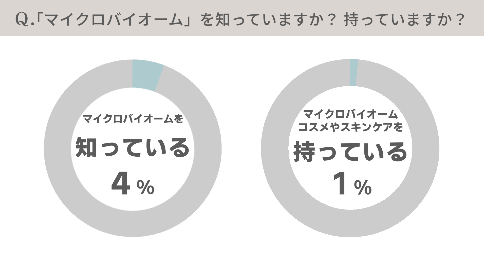 今回のアンケートでは「マイクロバイオームを知っている」という方が4%、「マイクロバイオームコスメやスキンケアアイテムを持っている」という方が1%という結果となりました。