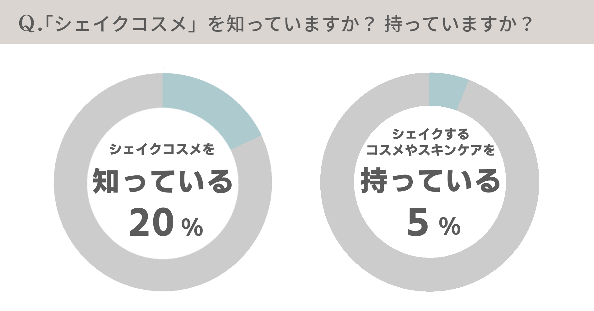 今回のアンケートでは「シェイクコスメを知っている」という方が20%、「シェイクコスメやスキンケアアイテムを持っている」という方が5%という結果となりました。