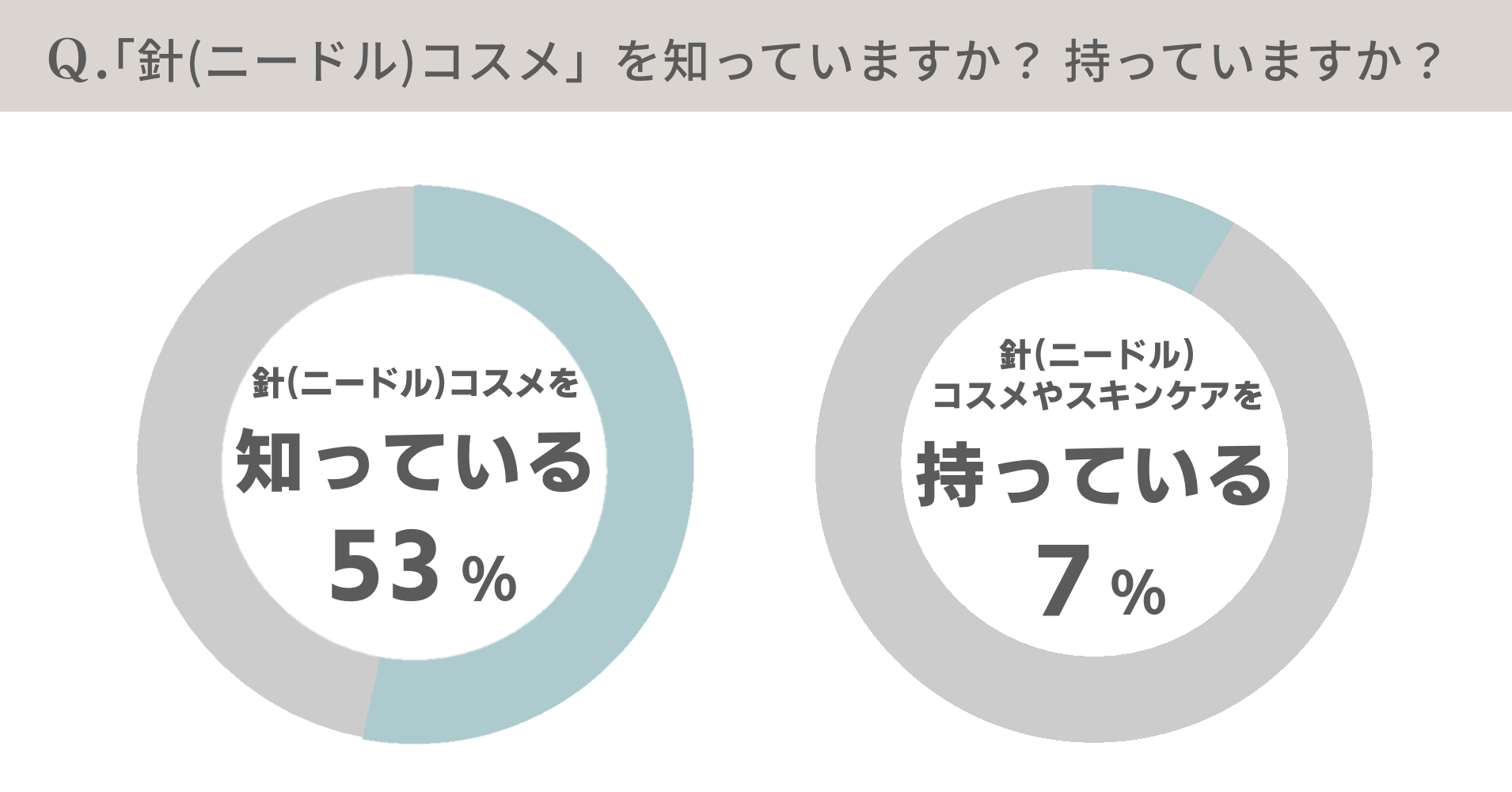 今回のアンケートでは「針(ニードル)コスメを知っている」という方が53%、「針(ニードル)成分を用いたコスメやスキンケアアイテムを持っている」という方が7%という結果となりました。
